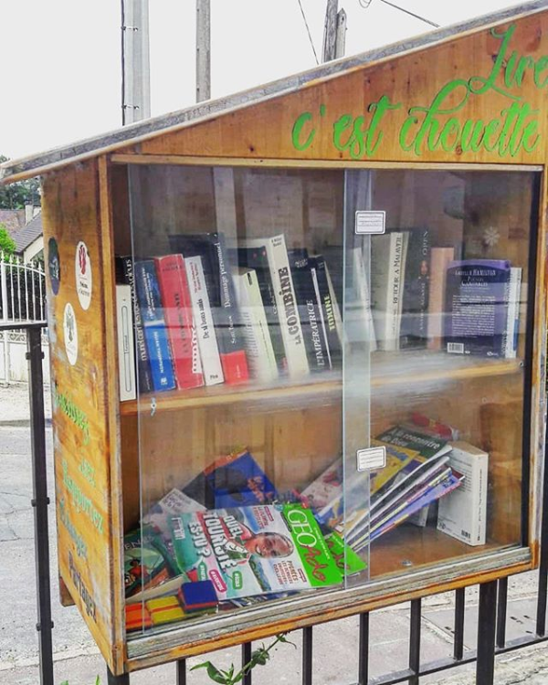 Nouvelle boîte à livres cette semaine, dans les Yvelines. Contrairement à d’autres, elle n’est pas fermée et a l’air plutôt bien remplie !