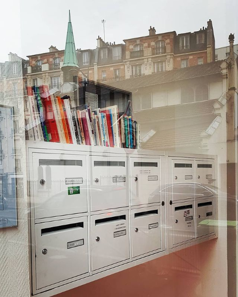 Parce que tous les endroits sont bons pour créer une boîte à livres, en voici une improvisée dans un hall d’immeuble dans le 13ème arrondissement parisien. Le genre de découverte par hasard qui fait plaisir !