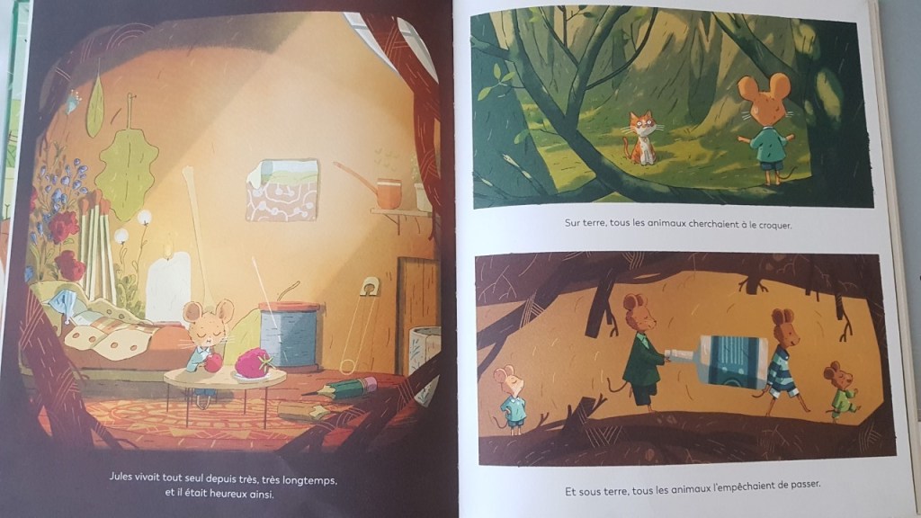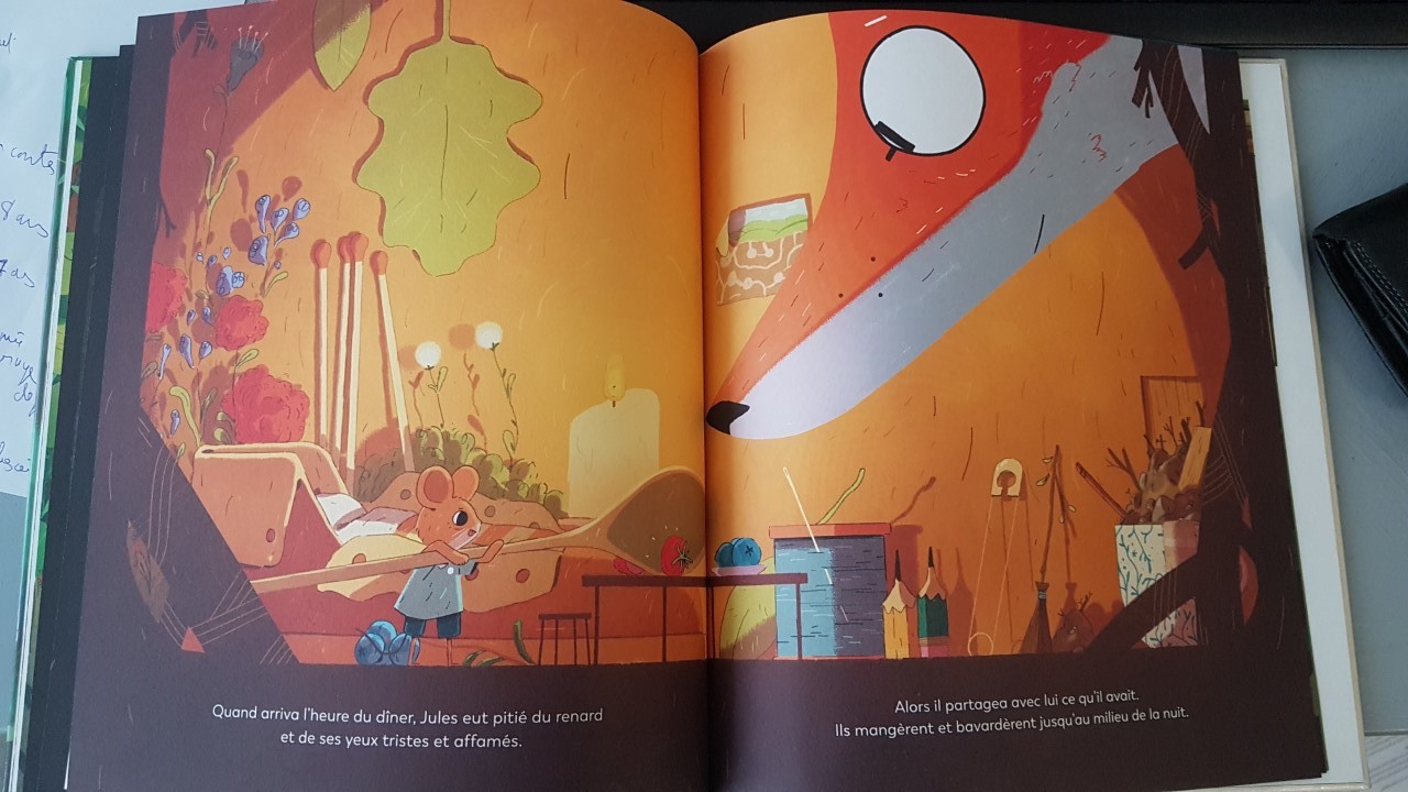 Premier point qui saute aux yeux, c’est la beauté des graphismes. Ces derniers sont particulièrement bien réussis et créent une atmosphère très colorée vraiment superbe dès les premières pages de l’album. L’histoire est elle aussi très réussie et on prend beaucoup de plaisir à suivre les aventures de cette souris et de ce renard qui vont réussir à devenir amis. Enfin, la fin de l’album est très originale et parvient à nous surprendre. Et on repose l’album avec un grand sourire sur les livres, parents comme enfants.