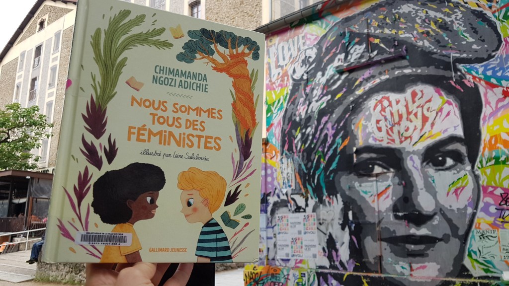 « Nous sommes tous des féministes » est l’adaptation pour la jeunesse du célèbre discours manifeste de l’autrice prononcé en 2012 aux Etats-Unis. En se fondant notamment sur son expérience de femme à Lagos au Nigéria, puis aux Etats-Unis elle met en avant les inégalités entre hommes et femmes. Pour elle, la clé pour y mettre fin réside dans l’éducation des filles et des garçons en insistant, indépendamment de leur sexe, sur leurs goûts et leurs aptitudes, sans prédestiner tel ou tel enfant pour telle tâche ou tel domaine.