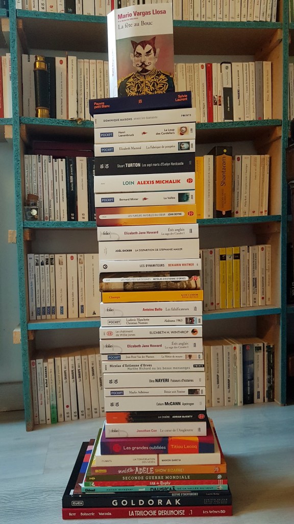 Tous les ans, nous offrons à nos proches, familles et amis, un certain nombre de livres. Le grand jeu étant de réfléchir à quel livre pourrait convenir à telle ou telle personne. Cette année, nous avons vu un peu grand, comme le montre cette petite pyramide livresque ! Mais nous avions vraiment envie de partager toutes nos belles lectures avec nos proches et leur faire découvrir toutes ces pépites. J’espère que ça leur plaira !