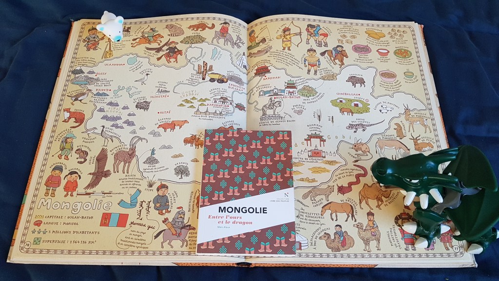 « Mongolie, entre l’ours et le dragon » n’est pas un guide général sur ce pays mais plus le récit des années qu’a pu passer son auteur à l’arpenter à pied. Il nous fait découvrir un peuple mongol en pleine mutation après la chute de l’URSS, dont elle était le premier satellite et la découverte depuis de l’économie de marché. Coincée géographiquement entre la Russie et la Chine, elle tente de conserver son indépendance et sa marge de manœuvre tout en essayant de profiter de la richesse de son sous-sol. Mais le livre nous donne également un bon aperçu du peuple mongol. Il apparait pris entre tradition pastorale dans l’immensité des steppes et son climat si rude (avec les yourtes qui symbolisent le pays dans notre imaginaire) et la modernité (à l’image d’Oulan-Bator et ses gratte-ciels modernes). Il tente de conserver son identité, au sein de laquelle se côtoient superstitions traditionnelles, et bouddhisme, quitte pour cela à convoquer la personne de Gengis Khan, persona non grata sous le communisme car considéré comme un exploiteur féodal. Le récit est complété par trois entretiens qui approfondissent successivement les thématiques religieuses, culturelles et sociétales.