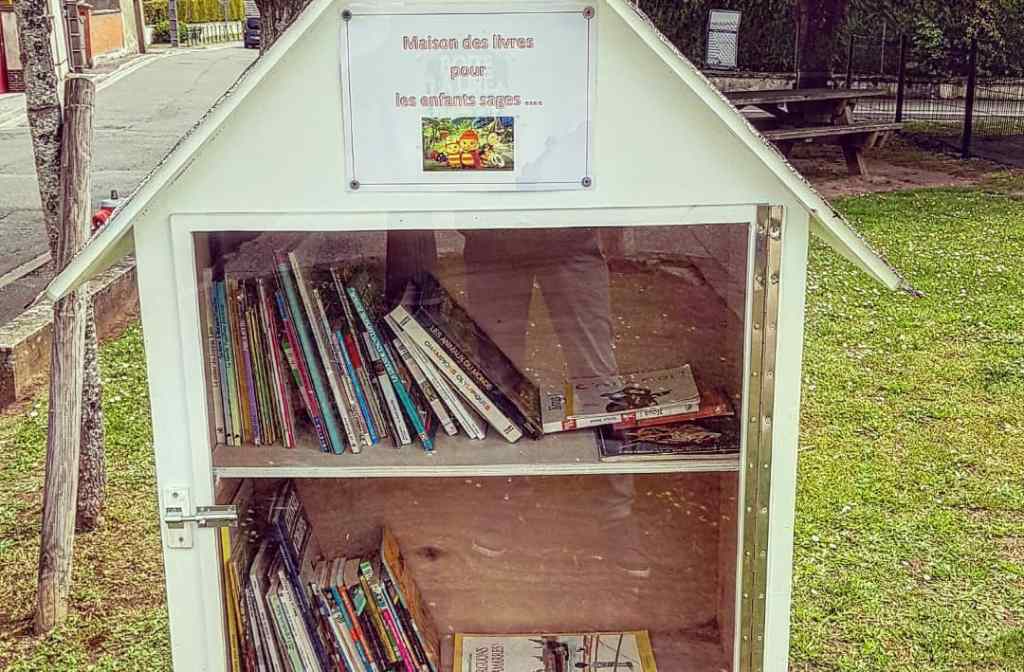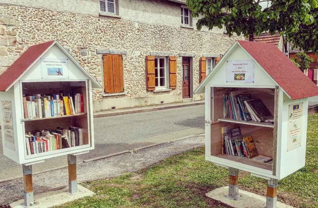 Pour finir l’année, je ne vous propose pas une mais deux boîtes à livres. À Faverolles, en Eure et Loir, adultes et enfants ont chacun leur boîte. Je dois dire que c’est la première fois que je vois une boîte à livres jeunesse aussi bien approvisionnée !