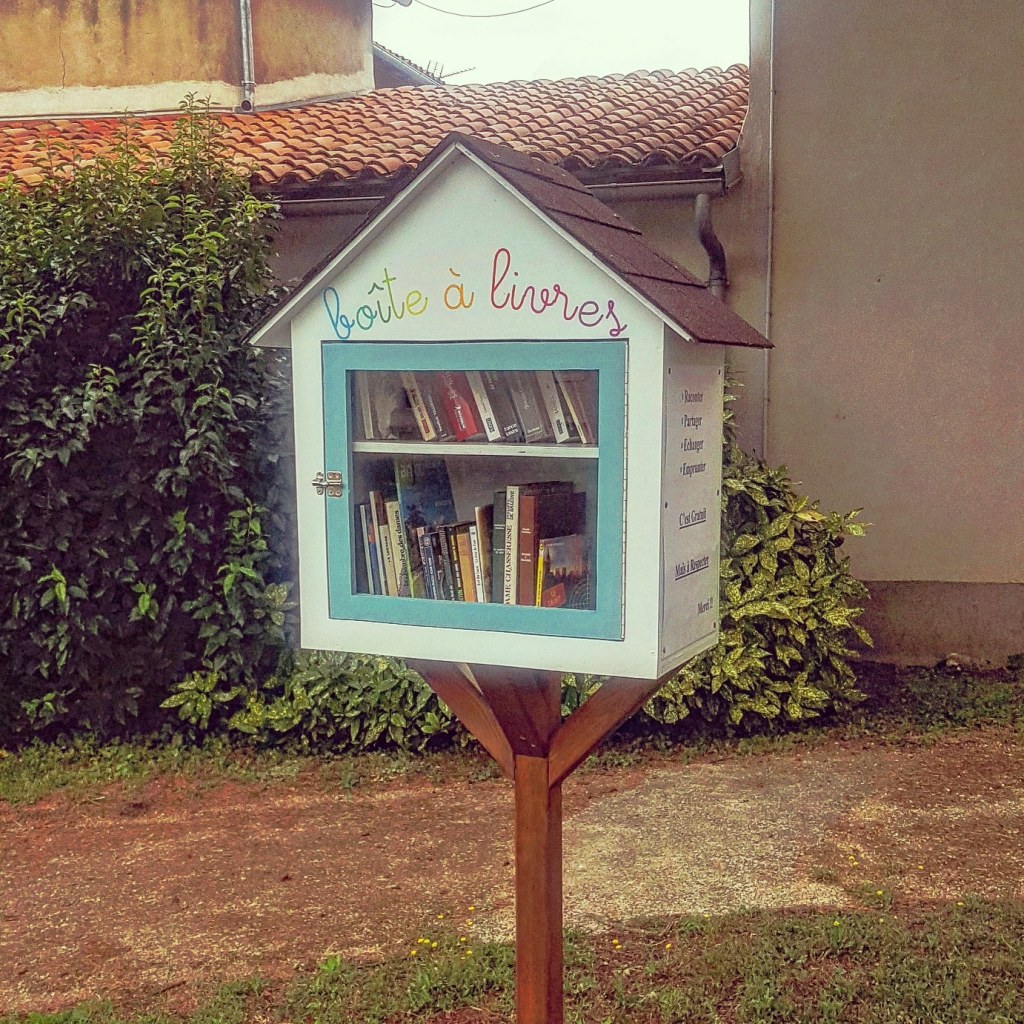 Cet été, nous avons profité des vacances pour aller passer une nuit dans les super cabanes dans les arbres du Parc de la Belle, à Magné, dans le département de la Vienne. Et comble de bonheur, je suis tombé sur cette boîte à livres juste en face de l’entrée du parc. Elle n’est pas belle la vie ?