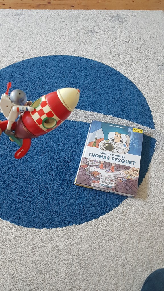 L’album suit le parcours de l’astronaute Thomas Pesquet depuis son recrutement par l’agence européenne de l’espace et son entrainement jusqu’à son premier séjour dans la station spatiale et son retour sur Terre. Il répond à beaucoup de questions que tout le monde a pu se poser sur la préparation des astronautes et la vie dans l’espace. Il explique de manière très claire un certain nombre de phénomènes qui pourraient apparaître totalement abscons. L’album fait en plus valoir un sens certain de l’autodérision qui coupe court à toute idée de sacralisation de l’astronaute. En définitive, le lecteur passe un très bon moment en compagnie de Thomas Pesquet et il en apprend beaucoup sur son parcours, son ressenti et son expérience. Le tout porté par des dessins très réussis. Un album qui plaira aussi bien aux amateurs de l’espace qu’aux néophytes comme moi.