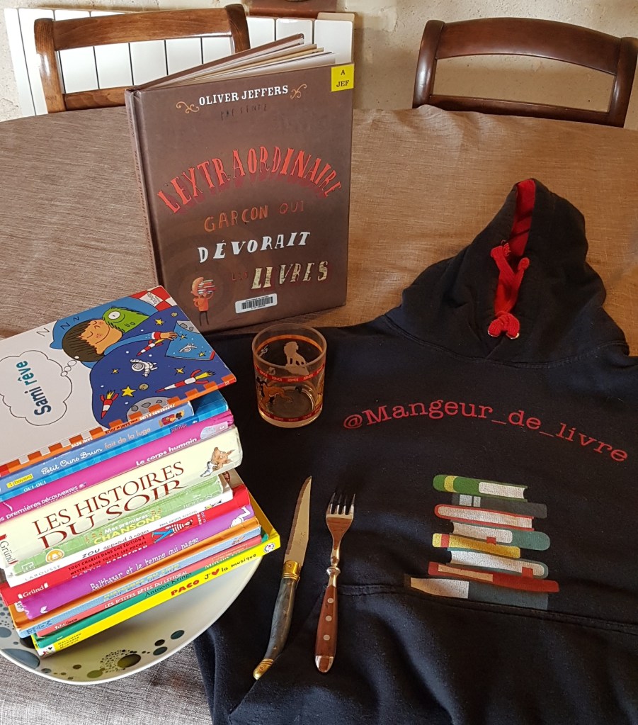 « L’extraordinaire garçon qui dévorait les livres » est un album très drôle. Ses dessins sont très réussis et utilisent tout un travail sur les typographies ainsi que différents types de papier (pages de livres, cahier d’écolier, dictionnaire…) pour un superbe résultat. L’album est plein de petits détails qu’on prend plaisir à découvrir à chaque lecture. Car vue la qualité de l’album, des lectures, il y en a eu beaucoup ! Toute la famille prend plaisir à suivre les aventures d’Henri et son amour dévorant pour les livres. Un véritable hymne au livre et à la lecture !