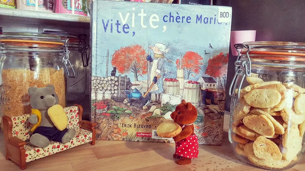« Vite vite, chère Marie » est un album superbe porté par des dessins très réussis. Il est composé sous forme d’une comptine (en fait même plutôt d’une litanie) reprenant toutes les injonctions de son mari (rentrer du bois, cueillir les pommes, ramoner la cheminée,…) Un homme charmant, n’est ce pas ? Le livre constitue une excellente porte d’entrée pour aborder les questions de la place des femmes et de l’égalité homme /femme avec les enfants, en les faisant réfléchir sur le rôle de Marie et de son mari dans la maison. Et finalement, une soupière sur la tête, expression du ras le bol de Marie, n’est franchement pas cher payé pour son tyran domestique de mari!