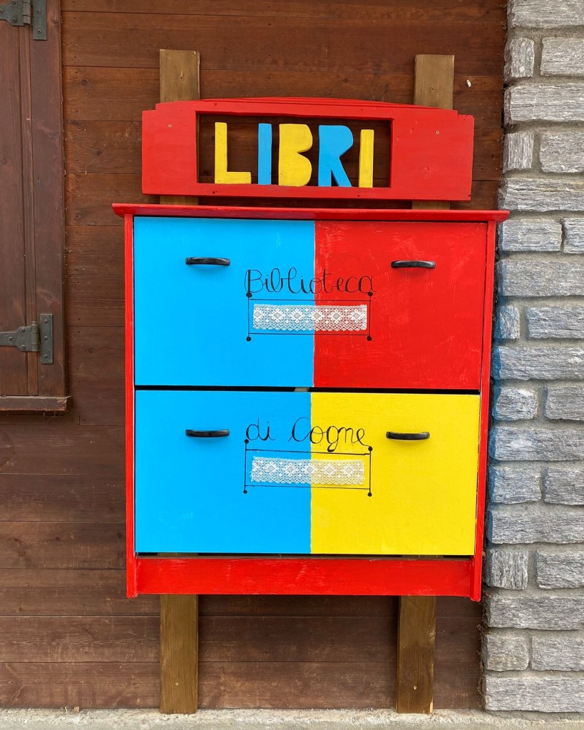 Aujourd’hui, nous faisons un petit détour en Italie dans le Val d’Aoste. Cette superbe boîte à livres est située dans le hameau de Lillaz, à Cogne. Elle donne vraiment envie de s’arrêter et de l’ouvrir pour essayer de dénicher un trésor de lecture !