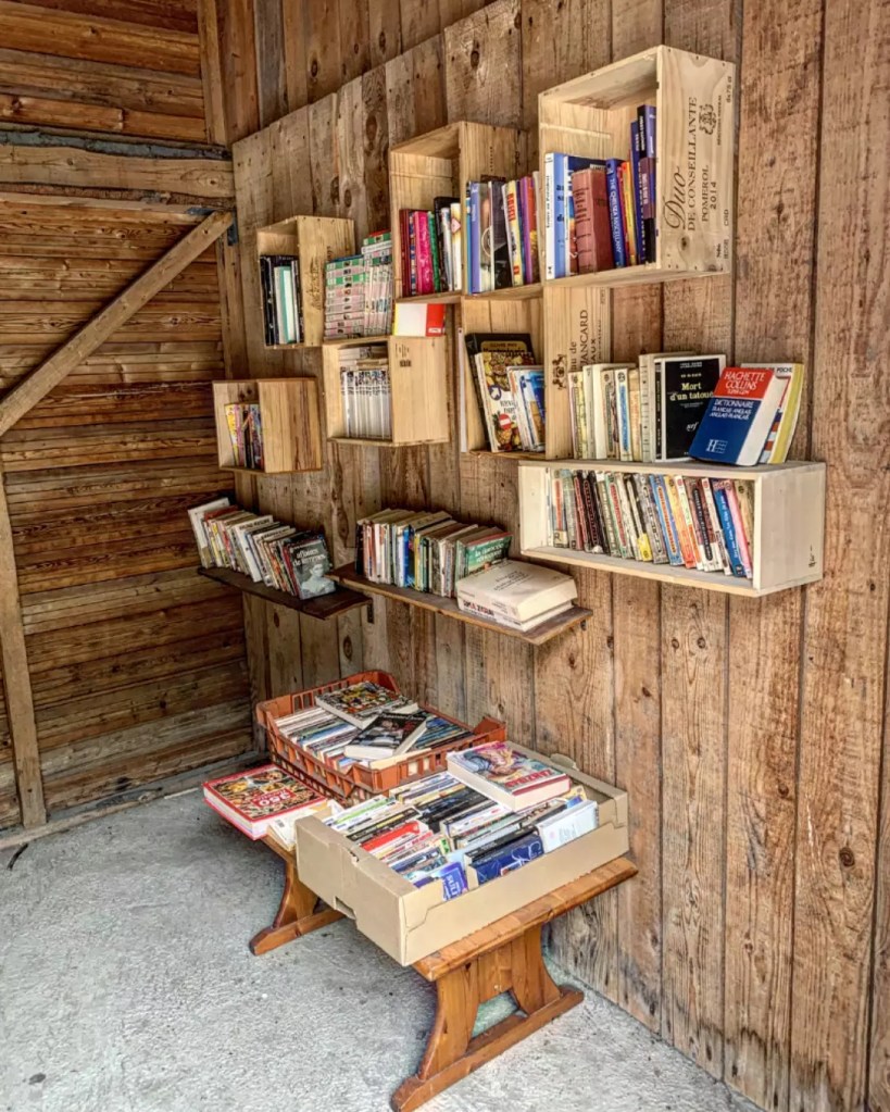 Vous l’aurez peut-être deviné en regardant les deux photos, notre tour de France des boîtes à livres nous emmène aujourd’hui en Savoie. Elle se trouve bien cachée en retrait de la route principale dans un lieu dit “Viclaire”, à Sainte-Foy Tarentaise.