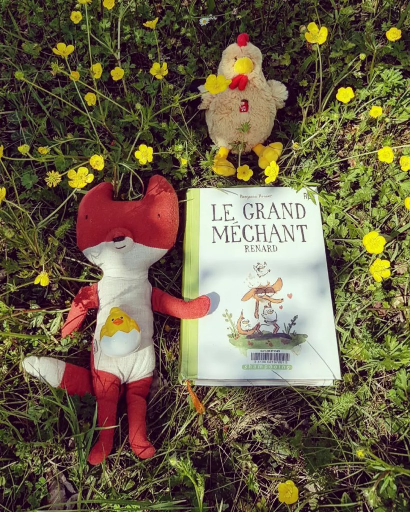 « Le grand méchant renard » est extrêmement drôle. On prend beaucoup de plaisir à suivre les mésaventures de ce pauvre renard. De grand prédateur (présumé), il va se transformer petit à petit, sans vraiment le vouloir, en maman poule de trois petits poussins persuadés de leur côté d’être des renards qu’il va falloir protéger de l’appétit d’un loup. C’est totalement absurde mais ça fonctionne parfaitement, aussi bien du côté des enfants que des adultes. Les différents personnages sont très réussis, portés par des dessins très simples mais terriblement efficaces qui les rendent très expressifs et par-là même très amusants. Des poussins apprentis prédateurs à la poule caractérielle en passant par le loup prédateur désabusé, le chien partisan du moindre effort et bien sûr le renard qui passe par tous les sentiments et toutes les expressions, la galerie de personnages est superbe ! Une lecture parfaite pour des éclats de rire partagés.