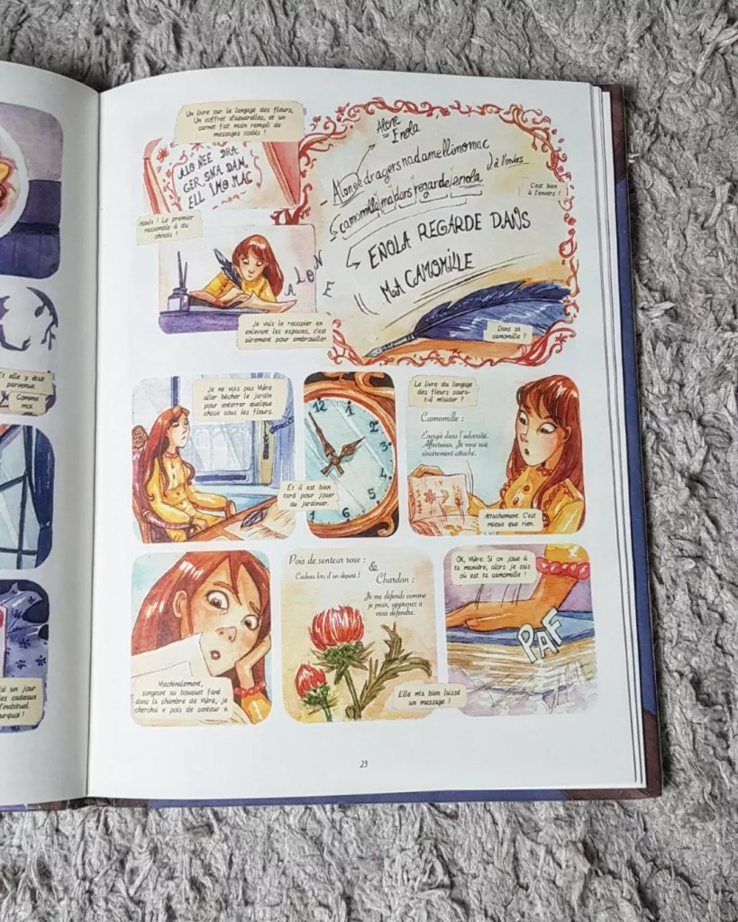 Le scénario nous tient en haleine jusqu’à la fin de l’album et donne envie de continuer la série pour voir où elle va bien pouvoir mener Enola. Les dessins pour leur part sont très réussis avec un style graphique doux, tout en rondeur, aux teintes couleurs pastel à l’aquarelle. Un vrai régal pour les yeux !