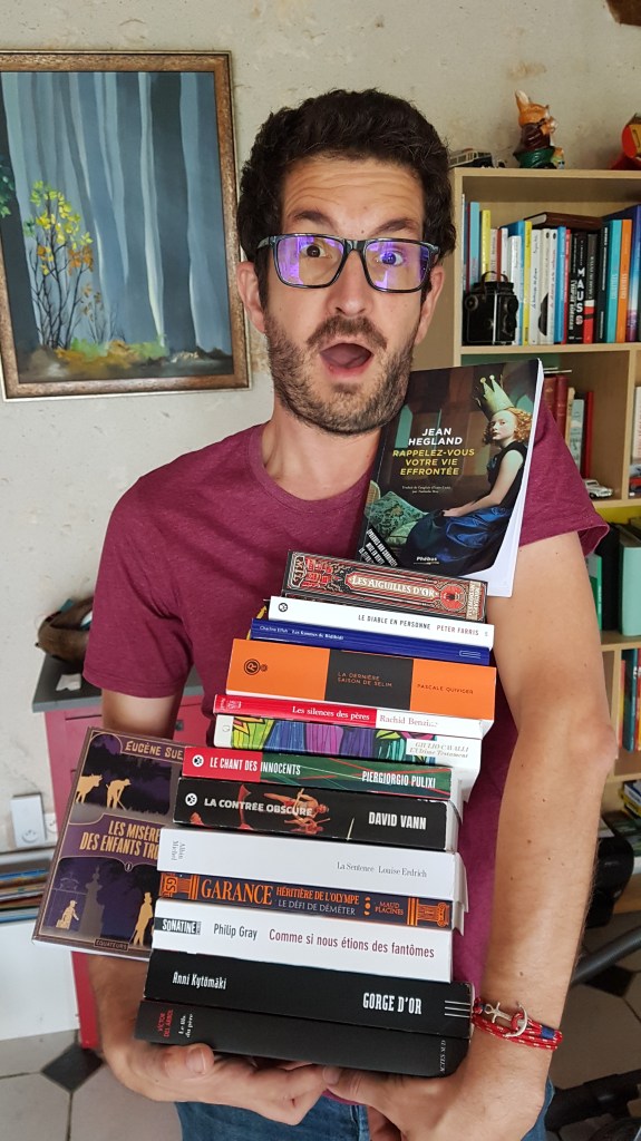 Comme vous pouvez le voir sur la photo, août a été un mois très chargé sur le plan des lectures avec un grand nombre de titres de la rentrée littéraire à lire avant leur parution. Avec pour résultat une petite saturation, je compte reprendre un rythme un peu plus tranquille en septembre !