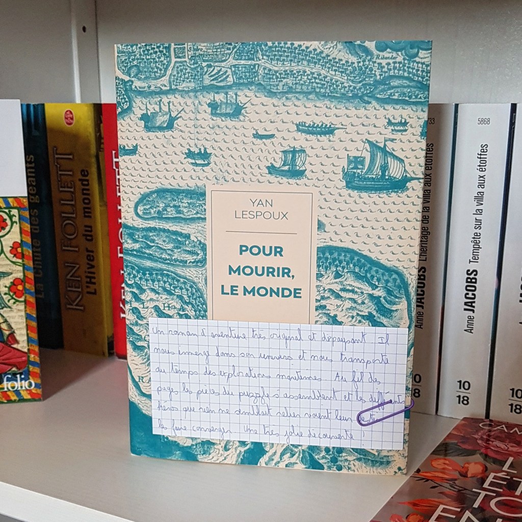 « Pour mourir, le monde » est un roman d’aventure très original et dépaysant. Yann Lespoux parvient à superbement nous immerger dans son univers et à nous transporter au temps des explorations maritimes. L’intrigue est un peu fouillie par moments avec ses différentes trames narratives. Mais au fil des pages, les pièces du puzzle s’assemblent et les différents héros que rien ne semblait relier les uns aux autres voient leur destin les faire converger. Le livre est très rythmé et sans temps morts. Une jolie découverte !