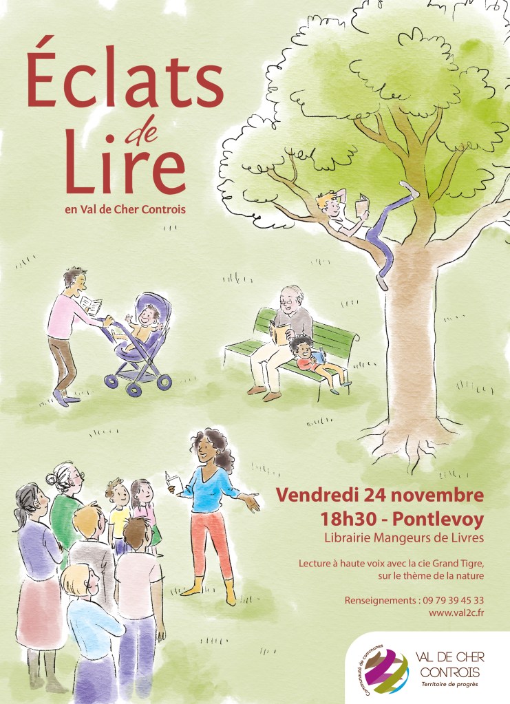 Dans le cadre du projet « Eclats de Lire » porté par la communauté de communes Val de Cher-Controis, la librairie est heureuse de vous inviter à une lecture vendredi 24 novembre à 18h30.