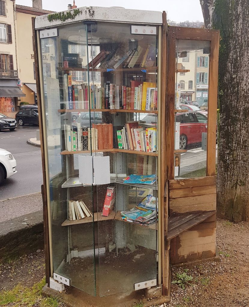 Notre tour de France des boîtes à livres reste aujourd’hui dans le département du Puy-de-Dôme. Voici une jolie cabine dénichée sur la route des vacances !